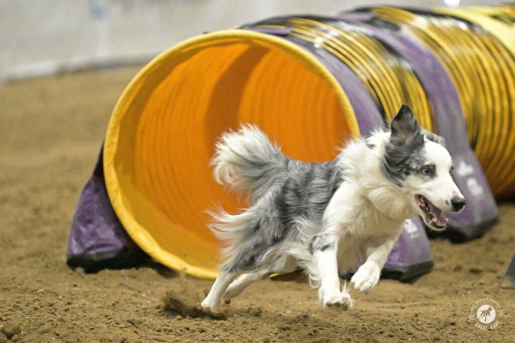 In the sport of agility, the handler has a limited amount of time to get their dog to safely navigate a set of obstacles in a predetermined order. The obstacles can include jumps, tunnels, a chute, weave poles, A-frame, dog walk, teeter-totter, and more! The dog must safely complete the obstacles in a specific order and within the time limit.